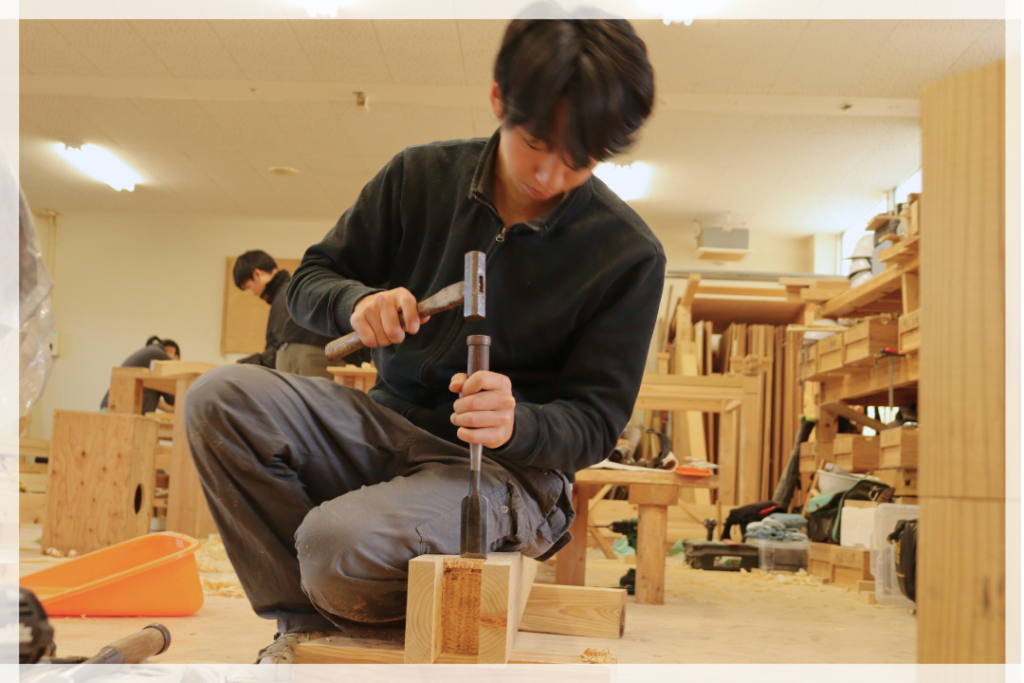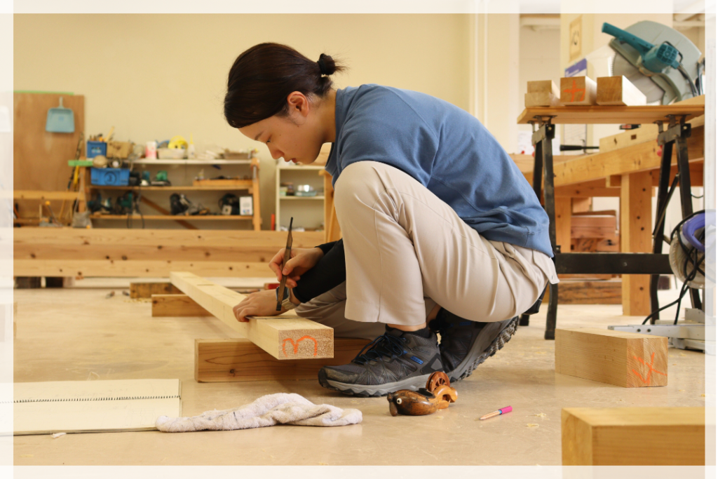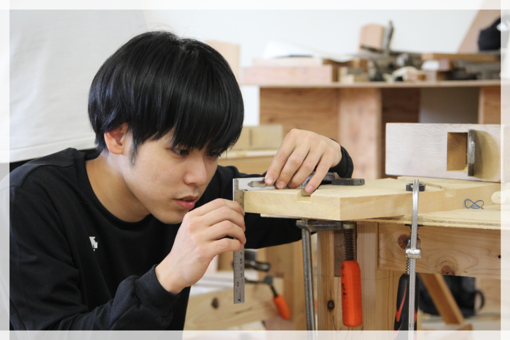 入学したときは、宮大工以外にも家具製作や設計などの仕事に興味がありました。SADOの実習を通して、より宮大工になりたい気持ちが強くなり、宮大工を目指すようになりました!