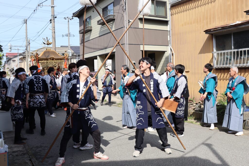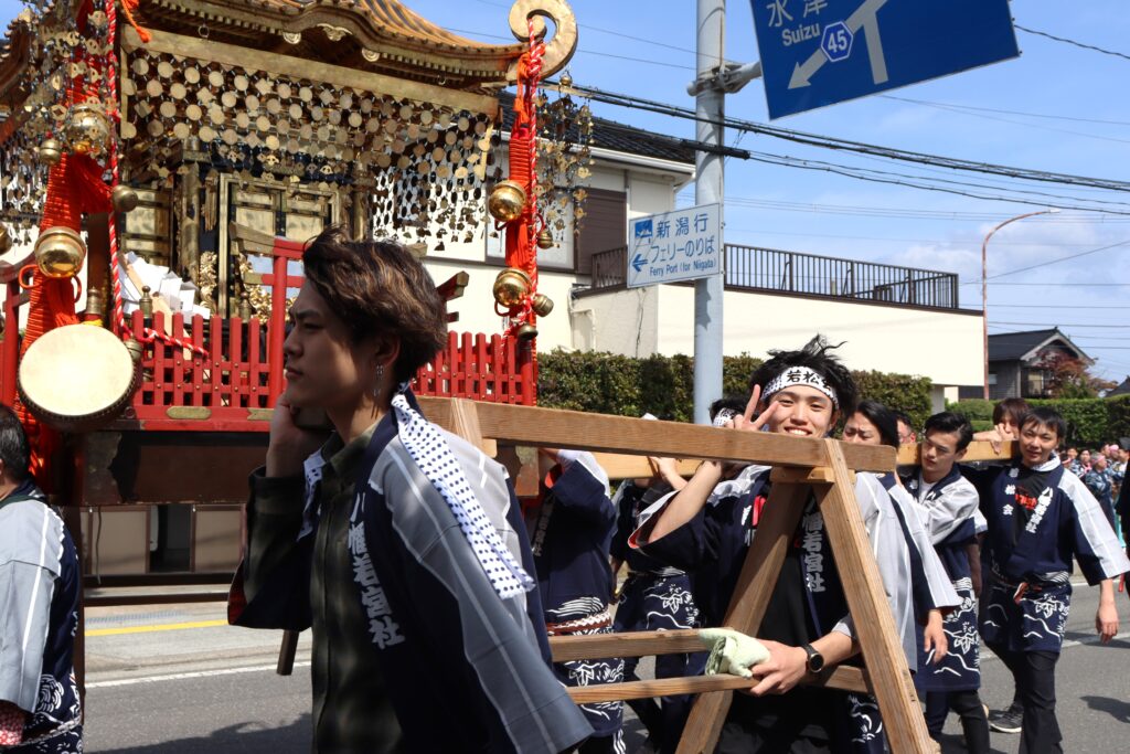 神輿の先導する人や神輿を担ぐ人など様々な役を任せて