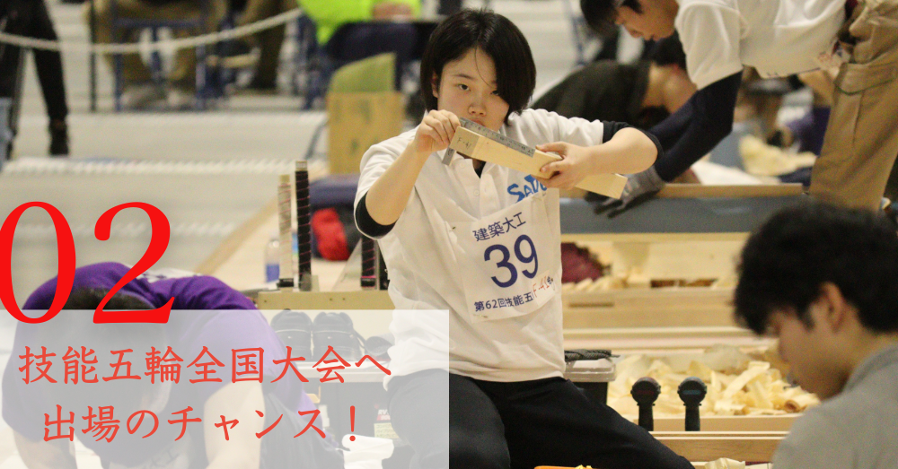 建築専科[1年制]の在学時も年齢が23歳以下であれば出場チャンスがあります。競技課題に向き合うことで図面理解、作業スピード、正確性など、さらに成長することが可能です。