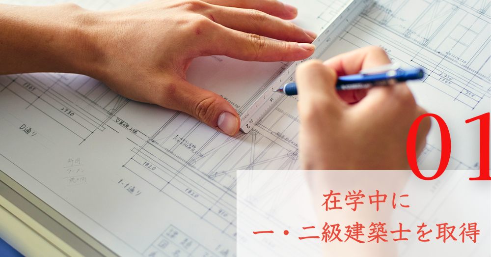 4年間建築系の大学に進学して勉強を行っても、建築士の資格取得までは出来ず、受験資格の取得までです。一方SADOでは、伝統建築大工学科で3年間学んだのち、「建築専科」へ進学することで在学中に一・二級建築士の取得を目指すことができます!