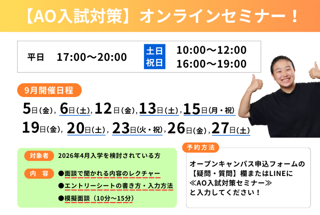 準備OKの方も、これから進路研究をはじめる方も、AO入試について一緒に確認していきましょう!