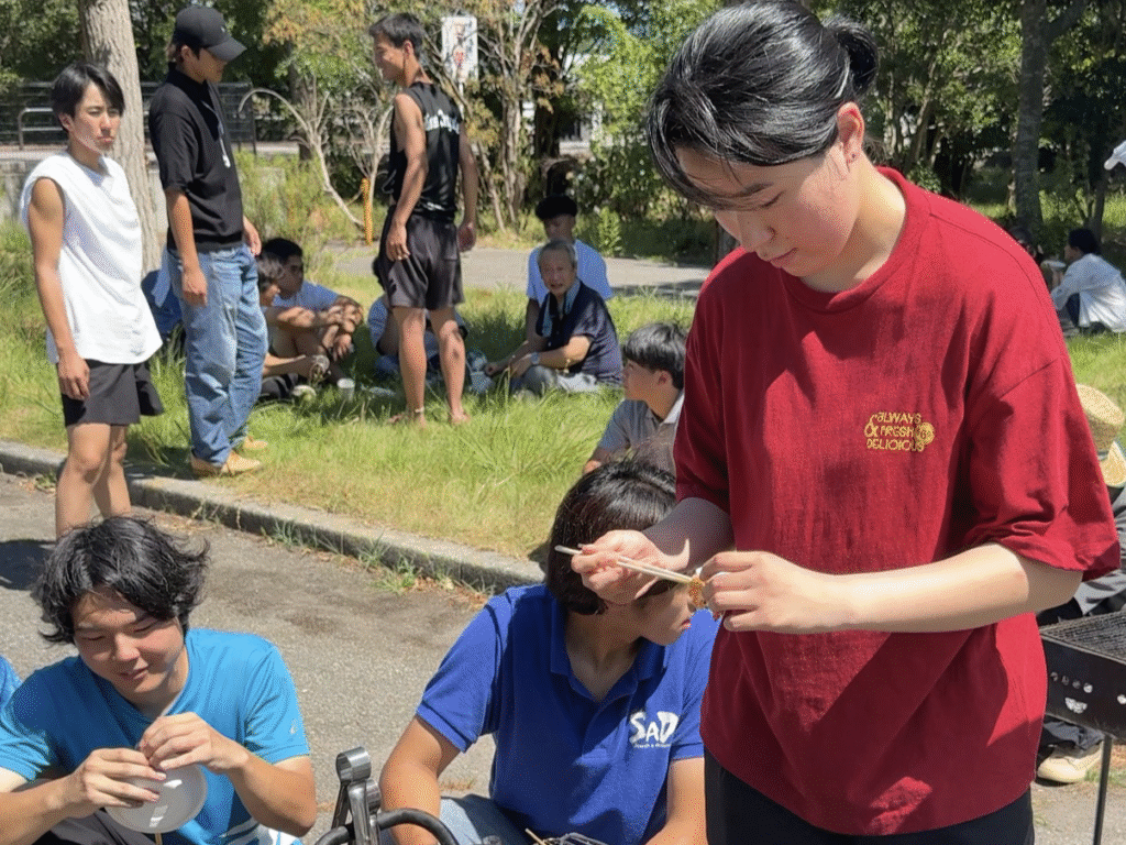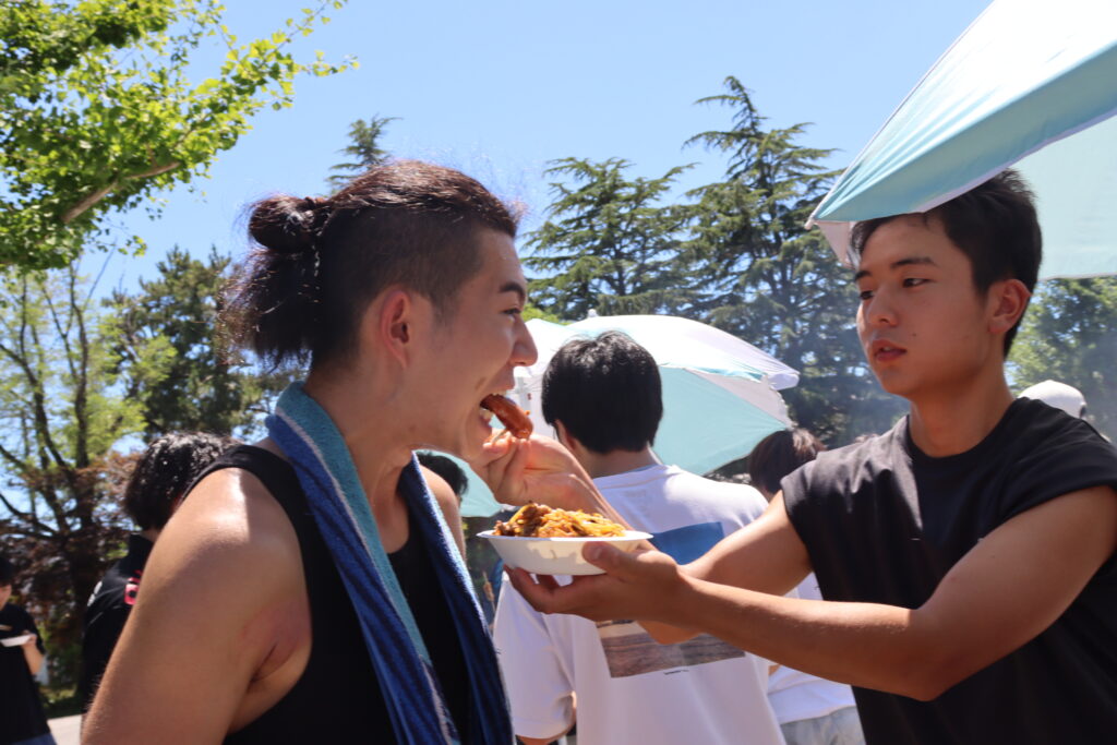 初めて食べる学生から、慣れた手つきで身を取り出す学生も👀