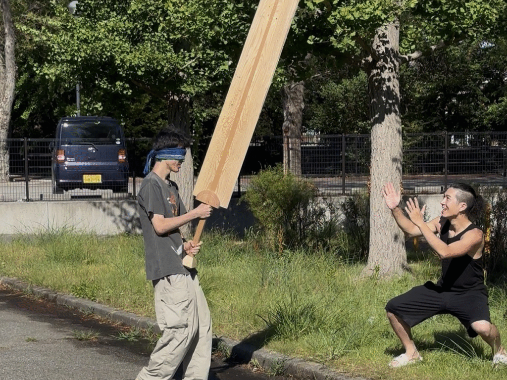 身長よりも大きい剣で、片手で持つのがやっと(笑)